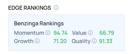 - Edge Stock Ratings: 91.92 Momentum score with Value at 93.51.