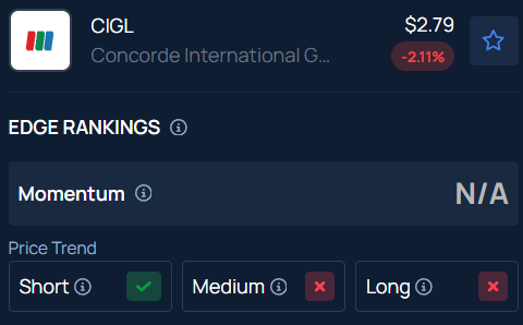Benzinga’s Edge Stock Rankings indicate that CIGL is experiencing short-term upward movement. Know how its momentum lines up with other well-known names.