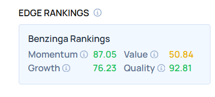 - Edge Stock Ratings: 87.05 Momentum score with Value at 50.84.